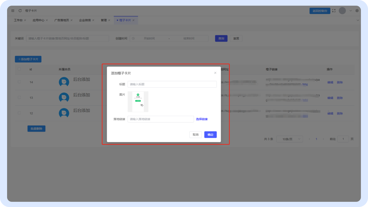 输入橙子卡片标题